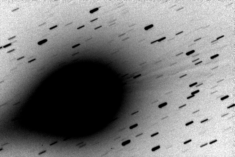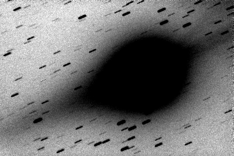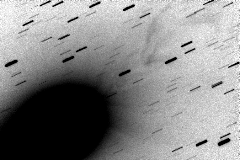 Comet Lulin C/2007 N3 2009 02 16 UT 5-5:40 CST Stack of 31x30 sec Tail to the left, anti-tail to the right. Straight thin line at PA ~310, is this the ion tail? Image by Dr. D. T. Durig Image uploaded on: 2023-05-25 15:20:28 | |